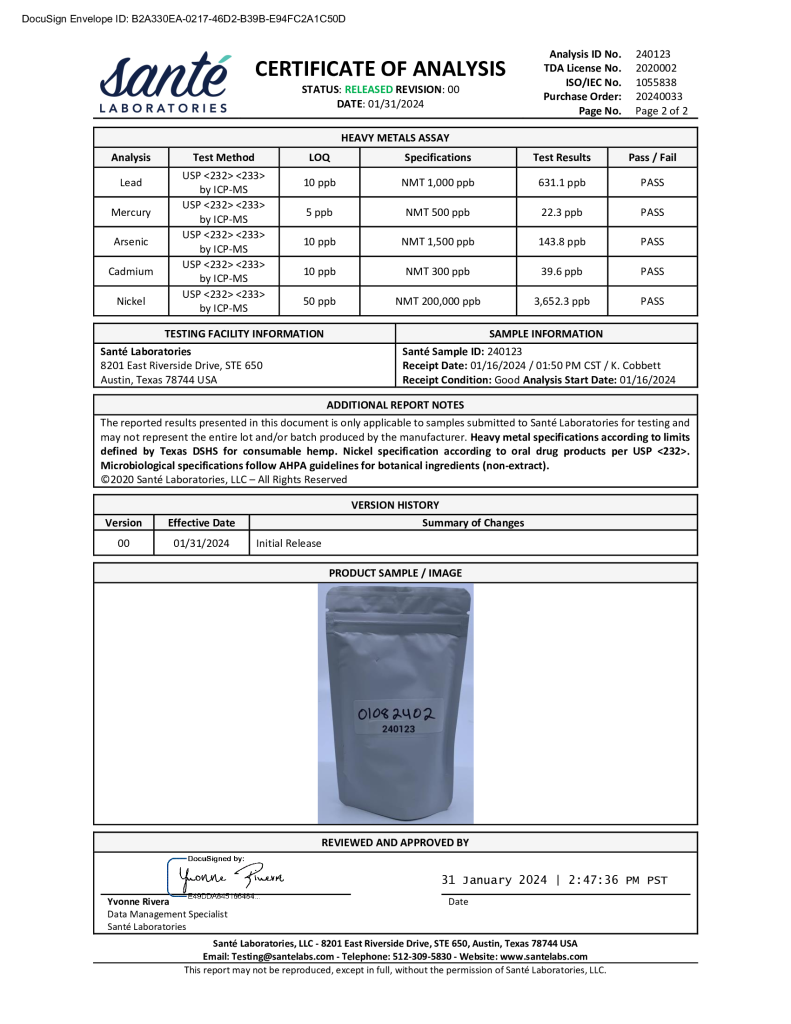 Certificate of Analysis